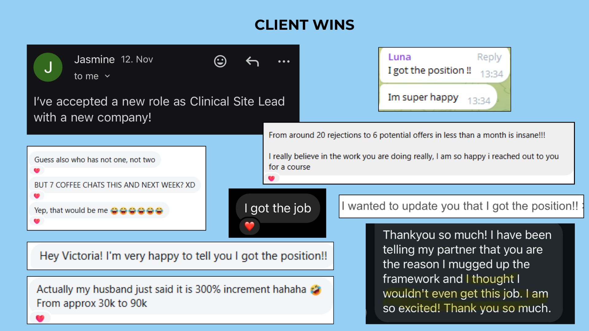 The result? I landed my first clinical trial role within 90 days on my first application using my strategy that I’ll teach you in my 1:1 coaching program.