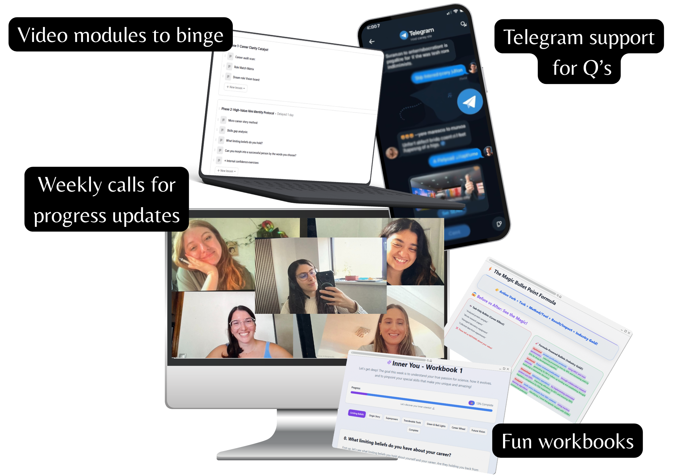 The 90 day career accelerator for ambitious scientists who know they're meant for more in their career and want to transition into high-paying, meaningful industry roles. Without endless applications or overwhelm. Private coaching. Limited spots.