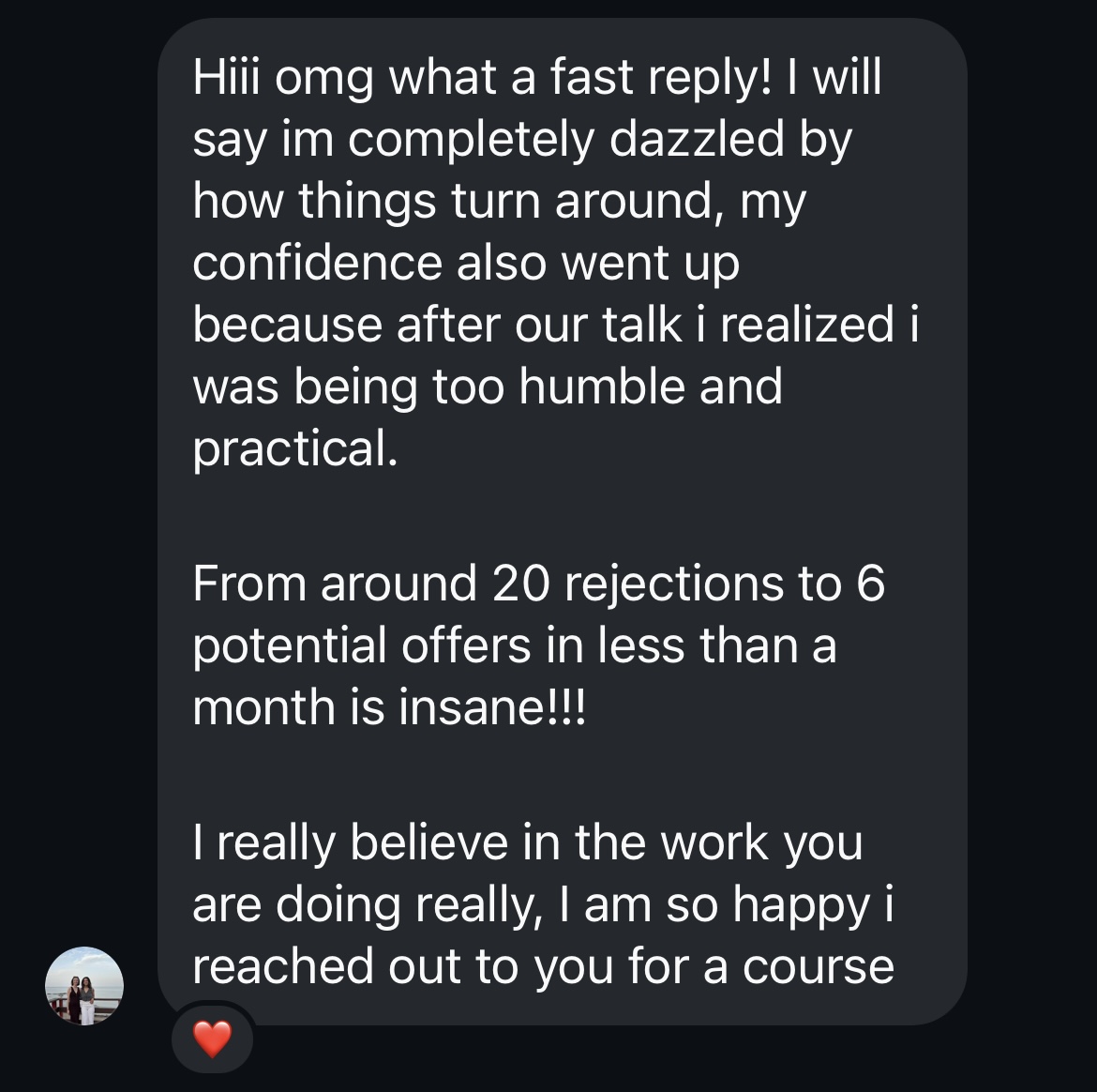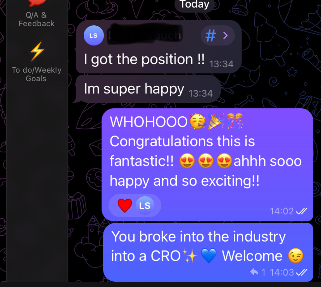 She came to me because she kept getting job rejections. We aligned her CV and positioning for precision medecines roles after decided clinical research wasn't her aspirations anymore. She networked on Linkedin with department heads at and landed her dream role after 2 interviews! Her salary exceeded her expectations too! Ooof, BIG WIN.